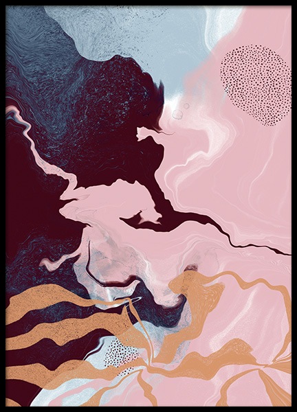 Motivi Handpicked Illustrazione grafica con forme astratte in blu e rosa, con la sagoma di un semicerchio arancione. L'arte grafica è fantastica perché offre soggetti per tutti i gusti e in molti colori differenti.