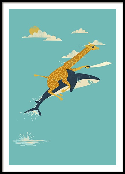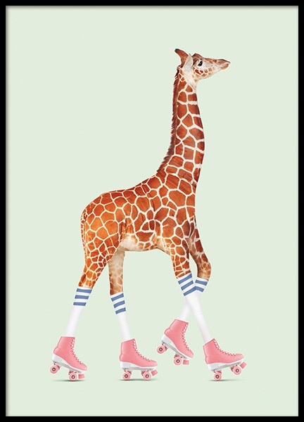 Rollerskating Giraffe Poster