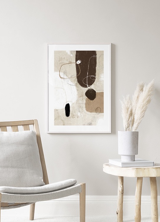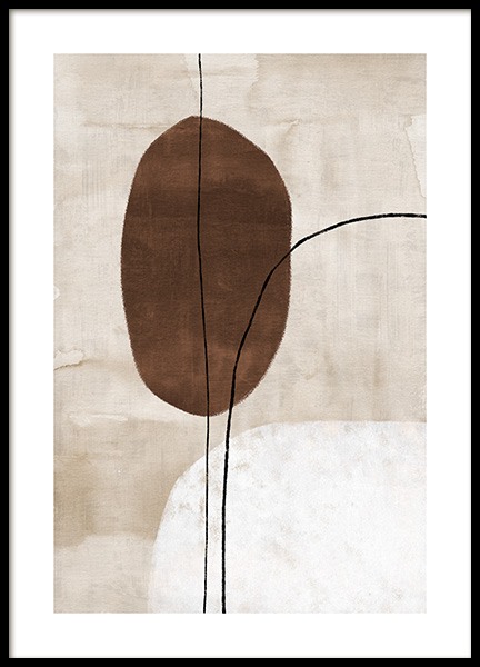 Motivi Handpicked Dipinto astratto con forme marroni, nere e bianche e tratti a matita su sfondo beige. Abbina questo poster ad Art Shapes No2 per creare una coppia perfetta per valorizzare le pareti di ambienti in stile moderno!