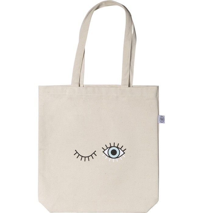 Motivi Handpicked Borsa in tessuto beige naturale con un occhio chiuso e uno aperto. Le nostre borse in tessuto con soggetti alla moda sono un accessorio esclusivo che sarai felice di sfoggiare! La nostra edizione limitata di borse in tessuto è prodotta e stampata in Svezia, in cotone 100 % riciclato.