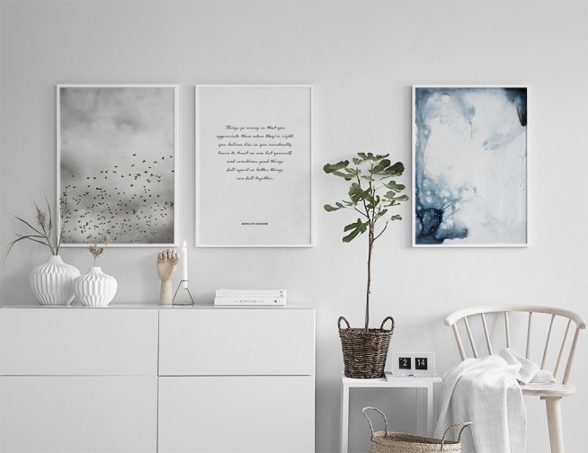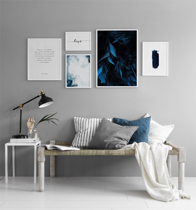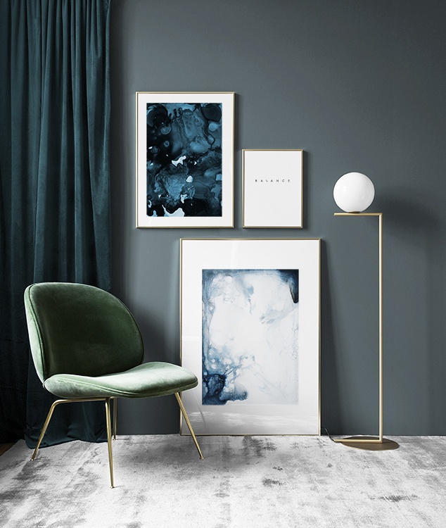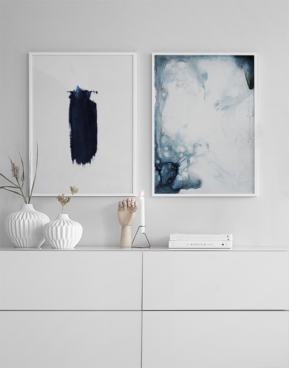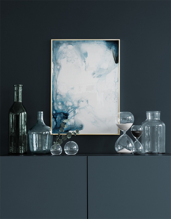 Motivi Handpicked Motivo di forme astratte blu che ricordano il mare. Crea una sensazione di calma e sta bene, per esempio, in una camera da letto. Il poster è creato da un dipinto a mano e la struttura della tela è visibile. Abbinalo in un collage di quadri con altri poster e stampe dalla nostra vasta gamma. Il soggetto è in origine un dipinto in acrilico su tela, perciò la struttura della tela si vede!
