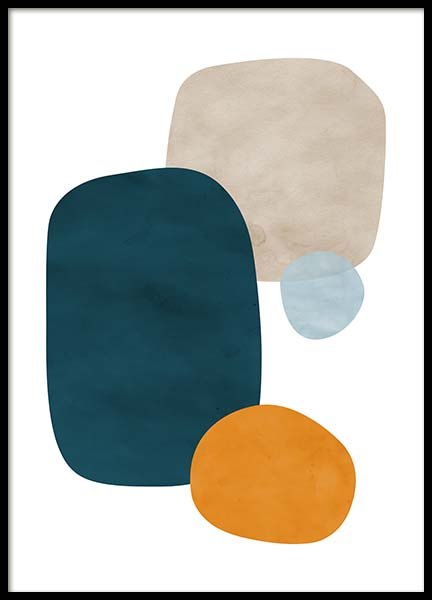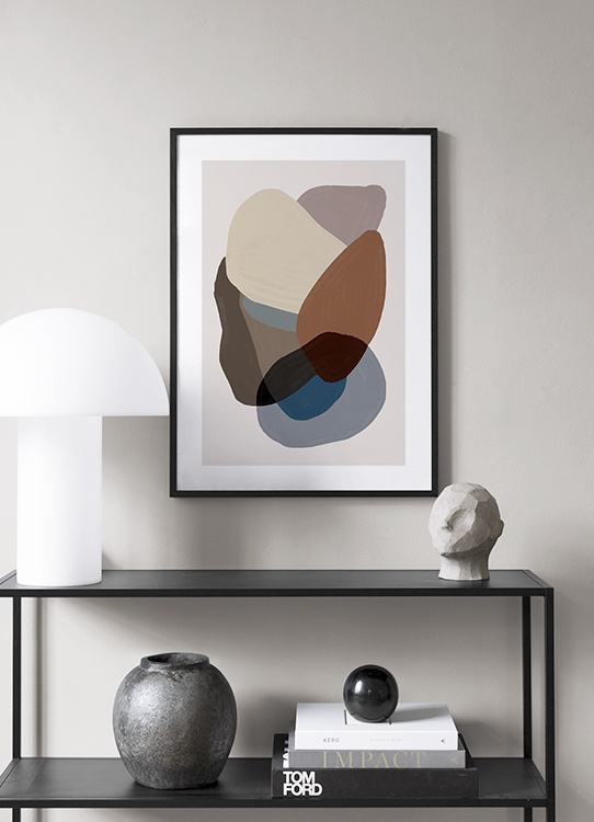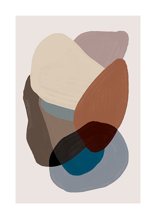 Motivi Handpicked Dipinto che ritrae varie forme in diverse nuance di marrone e blu su sfondo beige. Scegli poster in tonalità terrose e rilassanti per creare ambienti che stimolano il benessere! Questo poster si abbina perfettamente a Browns and Blues No2.