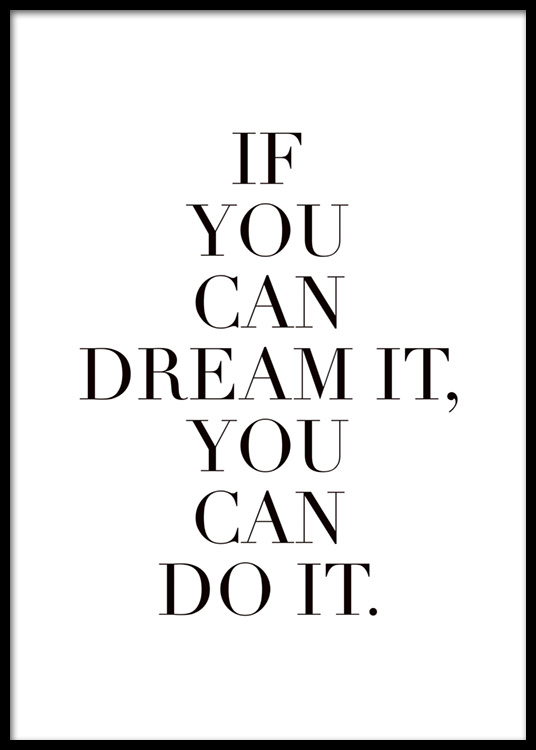 - Poster con il testo 'If you can dream it, you can do it' scritto in nero su sfondo bianco.