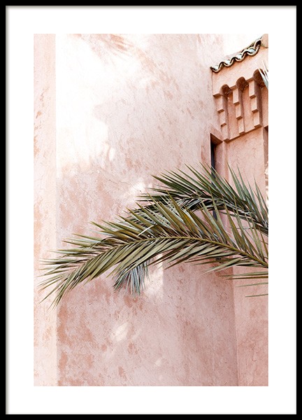 Motivi Handpicked Fotografia di ombre su un edificio rosa con grandi foglie di palma sulla sinistra. Poster luminosi e colorati doneranno alla tua casa un nuovo look in un lampo! Questo poster fa parte di Studio Amara, una collezione di fotografie scattate da Desenio Design Studio a Marrakech.