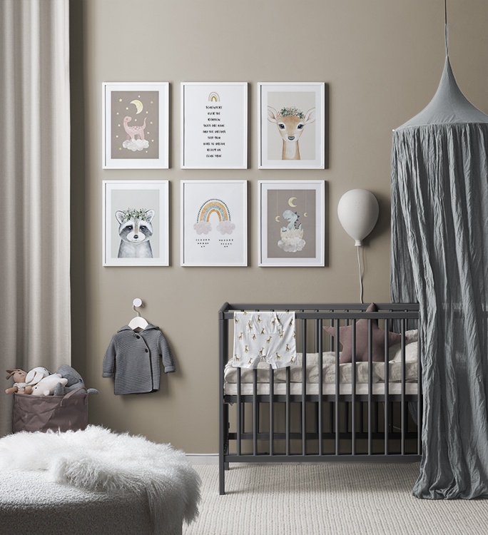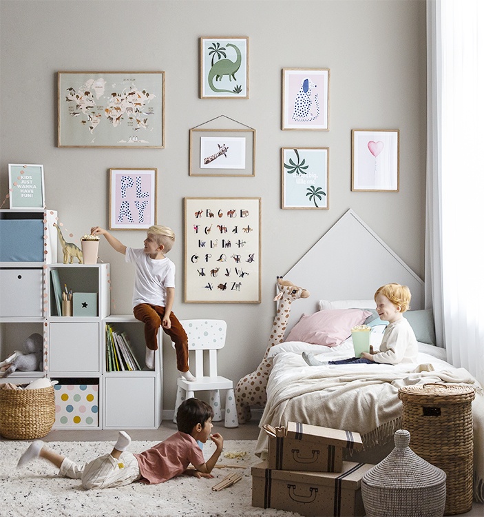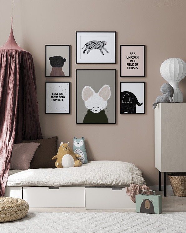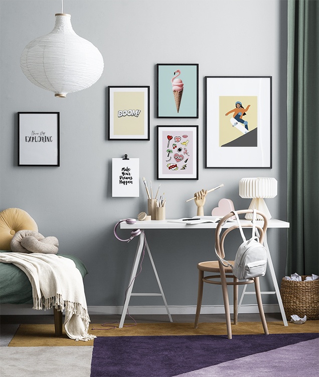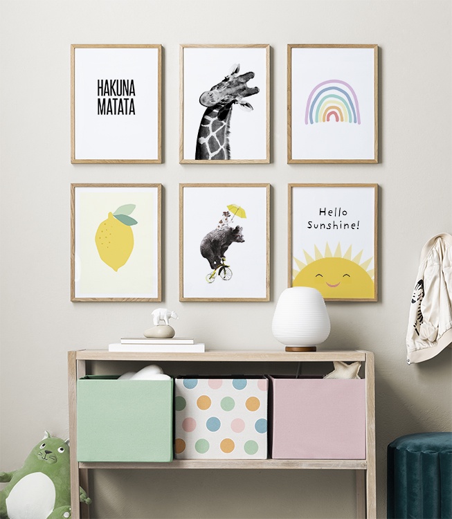 Man mano che i bambini crescono, anche i loro interessi cambiano: per evitare di dover cambiare costantemente la cameretta, è consigliabile utilizzare del Washi tape o delle clip per poster in modo da non lasciare fori o segni sul muro ogni volta che si sostituisce una decorazione. Lascia libera la fantasia quando decori la cameretta! Se desideri acquistare una delle nostre combinazioni di poster per camerette, fai clic sull’immagine oppure esplora la categoria Per la stanza dei bambini per vedere tutti i nostri soggetti.