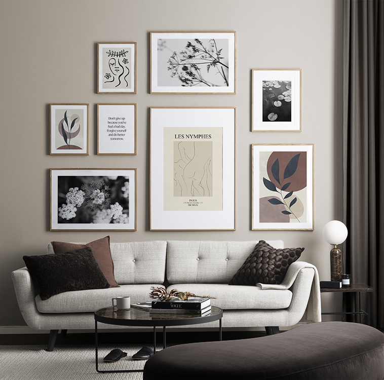 Se desideri decorare il soggiorno in maniera più sobria, possono essere sufficienti uno o due grandi poster per riempire lo spazio vuoto e richiamare l’attenzione sui soggetti prescelti. Racconta chi sei attraverso le illustrazioni alle pareti. Le superfici di un soggiorno offrono infinite possibilità, per esempio realizzare una galleria di immagini dal pavimento al soffitto, in un angolo o intorno a un mobile. Cerca idee tra le nostre proposte!
