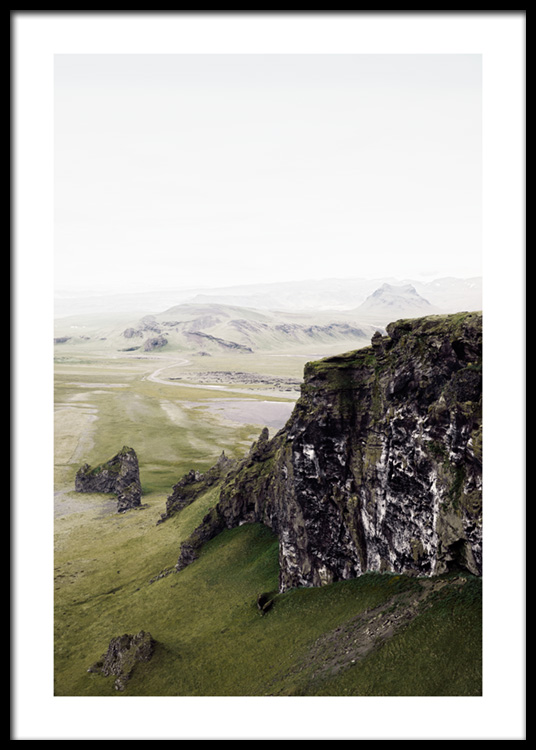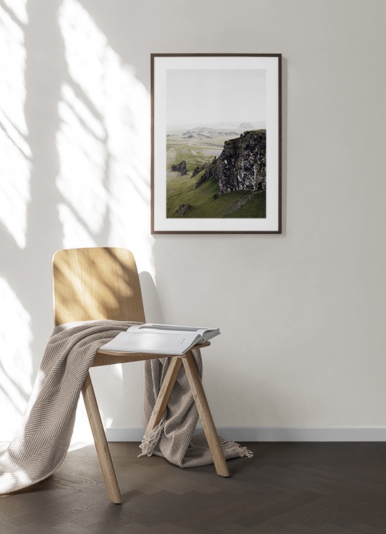 Motivi Handpicked Fotografia di montagne rocciose e un paesaggio verde in Islanda. Ritrova la pace interiore appendendo stampe naturalistiche alle tue pareti ed esplora Studio Elements di Desenio Design Studio, una collezione esclusiva con foto di paesaggi e animali scattate in Islanda.
