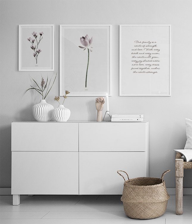 Motivi Handpicked Elegante poster con la fotografia di un fiore di loto. Il poster ha uno sfondo grigio con bordo bianco. Sta bene insieme al nostro poster Magnolia nella stessa serie, o da abbinare con un poster con una citazione. Stampato su carta opaca di alta qualità, non patinata.La cornice non è inclusa. Questo poster ha un passpartout integrato che incornicia elegantemente il soggetto.