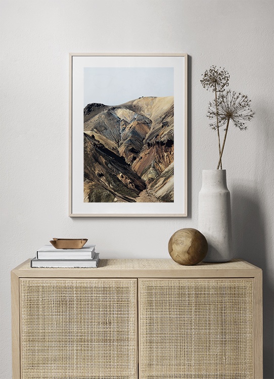 Motivi Handpicked Fotografia di montagne di vari colori negli altopiani meridionali dell’Islanda, Landmannalaugar. Esplora Studio Elements, una raccolta di foto scattate in varie località in tutta l'Islanda da Desenio Design Studio.