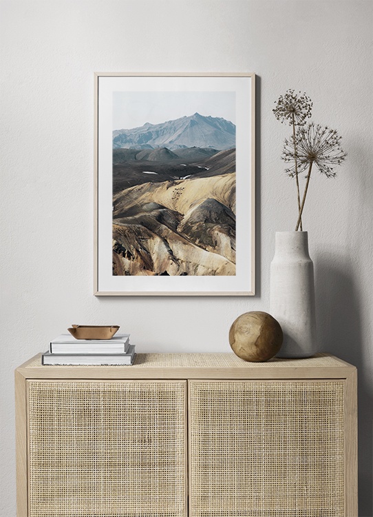 Motivi Handpicked Fotografia di un paesaggio montano in Islanda. Fuggi dalla quotidianità ed esplora la magica natura dell’Islanda! Desenio Design Studio ha creato Studio Elements, una collezione fotografica che esalta la bellezza della natura.