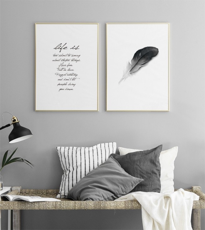Svartvita posters med text. Texttavlor med vackra budskap.