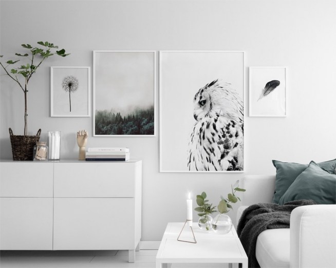 Posters, affischer i svartvitt. Snygg tavla med fjäder. Nordisk inredning.