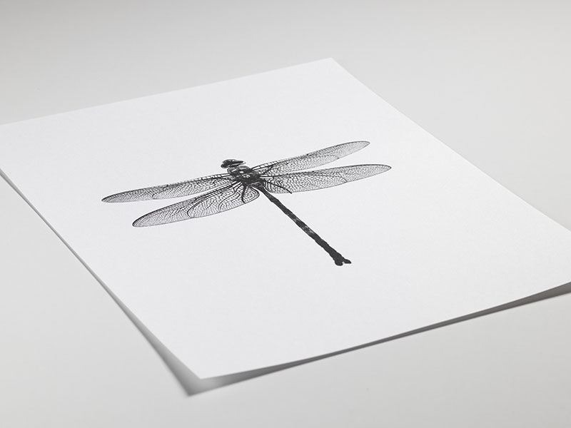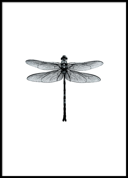 Splendida stampa con libellula in bianco e nero. Perfetta sia sulla parete come parte di una galleria, che appoggiata su una mensola.