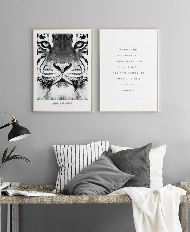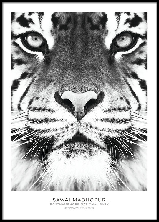 Motivi Handpicked Quadro in bianco e nero con tigre, sta bene in una cornice elegante o come parte di una galleria a parete. Se lo vuoi abbinare ad altre fotografie di animali selvatici, le trovi nella categoria Animali oppure Fotografie. Abbiamo moltissime stampe e poster con animali e natura, sia a colori che in bianco e nero. Combinali come preferisci in una bella galleria a parete! Poster con un bordo bianco che incornicia elegantemente l’immagine.
