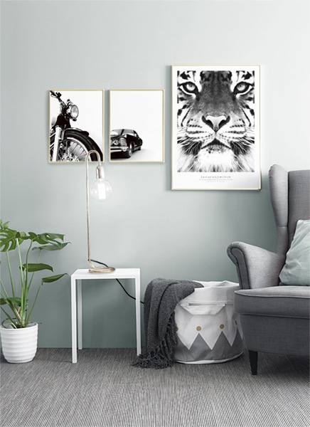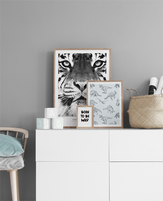Posters, affischer och planscher med svartvita fotografier på djur.