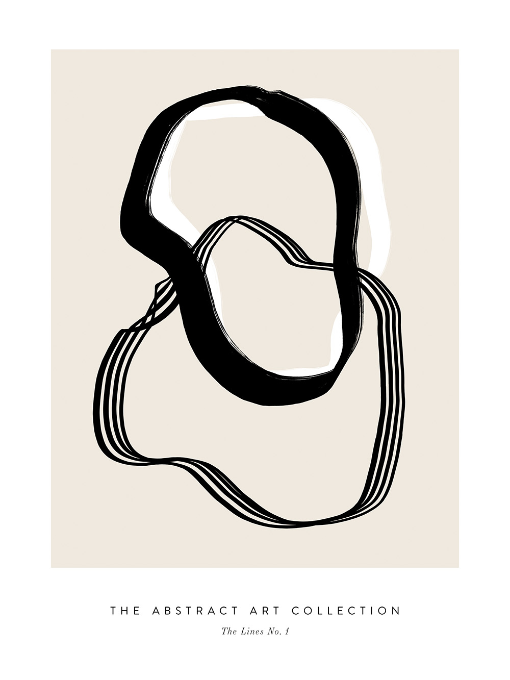 Da 19,95 €'Poster con linee bianche e nere su sfondo beige. Il poster è completato dal testo ''The abstract art collection - The Lines No1'' scritto al fondo. Se desideri creare una coppia perfetta, abbina questo poster a The Lines No2.